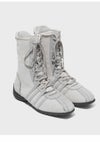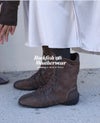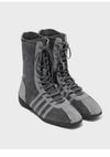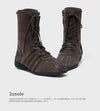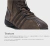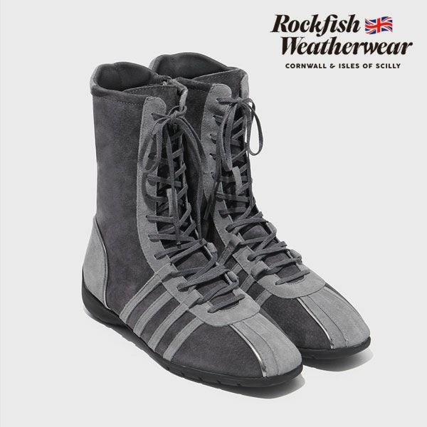 柔らかなピッグスキンスエードが、上質でヴィンテージ感のある雰囲気を演出するハイカットスニーカー。 クラシックな魅力に洗練されたエッジを加え、足元にやさしい印象を与えます。 ヴィンテージ×スポーティーなスタイルを融合させたデザインには、 Rockfish Weatherwearの技術とムードが絶妙なバランスで落とし込まれています。 サイドパネルに施された4本ラインの装飾は、シューレースループとしても機能するユニークなディテール。 さらに、箔風パイピングがアッパーにスタイリッシュなアクセントを添え、全体のビジュアルを引き締めます。 インソールには3mm厚の高反発スポンジを使用し、快適なクッション性を確保。 3cmのスニーカーアウトソールが、さりげないスタイルアップと履き心地の良さを両立させています。