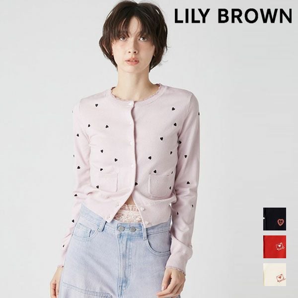 - 【新作10%OFF】【即納】リリー ブラウン LILY BROWN トップス 26春夏 love letterコンパクトニットカーデ ミドル丈 長袖 ハート ロゴ lwnd261056