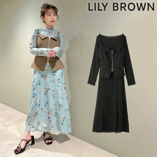 - 【SALE60%OFF】【即納】 リリー ブラウン LILY BROWN ワンピース ビスチェ&シアーワンピースセット 長袖 ロング丈 lwfo251149