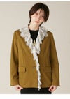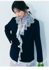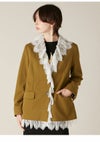 【繊細レースが華やぐヴィンテージライクジャケット】 ヴィンテージムード漂う華奢なレースを贅沢にあしらったジャケット。 衿ぐりから裾にまであしらったヒゲレースが、繊細で可憐な表情を添えます。 レース部分は衿・裾それぞれ取り外しが可能な仕様のため、 スタイリングに合わせて調整できるのも魅力。 すべてを外せばシンプルなジャケットとしても活躍し、 オンオフ問わず幅広いシーンにマッチします。 フェミニンなワンピースとの相性はもちろん、 デニムでカジュアルダウンした着こなしもおすすめです。 【Fabric】 繊細な柄が特徴のヒゲレースを使用し、ヴィンテージライクな風合いを演出。 軽やかでありながらシーズンライクな存在感を放ち、 ウィンターシーズンから春先まで長く楽しめる一着に仕上げました。