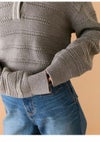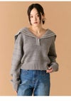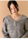 【クロシェ編みが映えるセーラーニット】 温かみのあるクロシェ編みで仕立てたセーラーニット。 毎シーズン人気のセーラーカラーニットを、着やすいサイジングはそのままに、クラフト感漂う編み地でアップデートしました。 女性らしい抜け感を与えるスキッパー襟は、スプリングホックで留めればVネック仕様にも変化。気分やスタイリングに合わせてアレンジが楽しめます。 クロシェならではの表情豊かな編み地を採用し、温かみと抜け感を両立。 軽やかな着心地で、デニムと合わせたカジュアルスタイルにも、スカートを合わせたフェミニンな装いにもマッチする万能な一着です。
