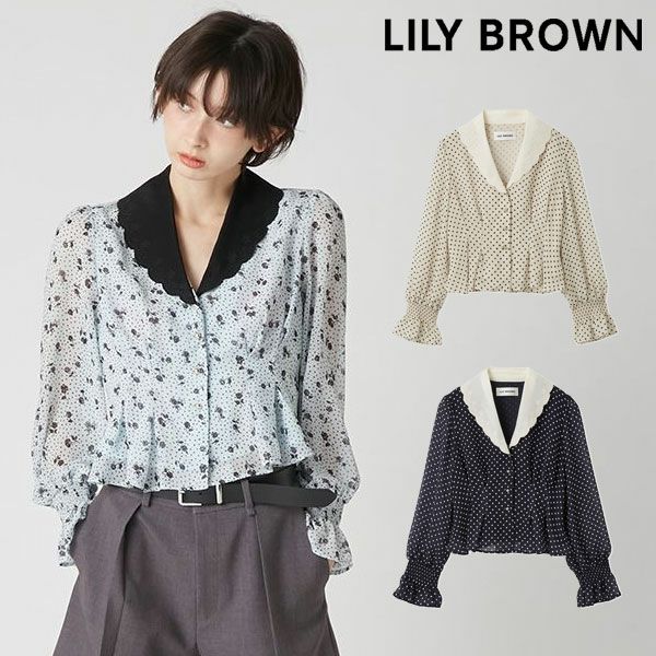 【新作10%OFF】 リリー ブラウン LILY BROWN トップス 26春夏 クラシックプリントカラーブラウス 2月下旬~3月中旬予約 ミドル丈 長袖 セットアップ lwfs261133 lwfb261132