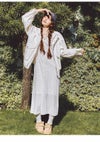 0【S-M】着丈126cm バスト89.5cm 袖丈14.2cm 肩幅35cm ゆき丈31.7cm 前下がり18.2cm ウエスト77cm ヒップ96cm 裾幅89.5cm 1【M-L】着丈128cm バスト92.5cm 袖丈15cm 肩幅36cm ゆき丈33cm 前下がり18.4cm ウエスト80cm ヒップ99cm 裾幅91cm ※ブランド公式表記