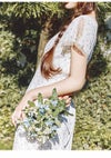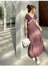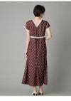 【レーストリムが映えるヴィンテージライクワンピース】 ロマンティックなムードを纏うレーストリムワンピース。 シボ感のあるジョーゼット生地にオリジナル柄をプリントし、 表情豊かでまるで本物のヴィンテージのような奥行きを再現しました。 フロントや袖にあしらったレーステープの縁取りは、 デザインポイントとして華やかさを添えるだけでなく、 目線を自然と上へ導くことでスタイルアップ効果も発揮。 スカート部分にはゆとりを持たせ、 動くたびに広がる軽やかなシルエットで体型をさりげなくカバーします。 袖口はボタンで開閉でき、2通りのデザインが楽しめる仕様。 レースと柄の配色はそれぞれヴィンテージから着想を得たこだわりの組み合わせです。 【Fabric】 繊細なシボ感が特徴のジョーゼット素材を使用し、 軽やかで揺れ感のあるシルエットを演出します。