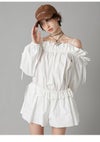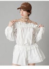 - リリー ブラウン LILY BROWN オールインワン 26春夏 デコルテフリルミニロンパース 3月上旬~下旬予約 長袖 ミニ丈 オフショルダー パンツ シャツ lwfo261163