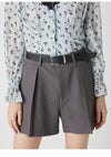 【美シルエットが叶うきれいめタックショートパンツ】 シンプルながらも計算された美シルエットで、着回し力抜群のきれいめショートパンツ。 深めのタックとセンタープレスが縦ラインを強調し、脚をまっすぐ細く見せてくれる一着です。 広めの裾幅は気になる腰まわりを自然にカバーしつつ、軽やかな印象に。 付属のベルトでウエストマークすれば全身にメリハリが生まれ、 カジュアルにもきれいめにも幅広くマッチします。 【Fabric】 程よいハリと落ち感を兼ね備えた素材を使用し、きれいめなフォルムをキープ。 身体のラインを拾いすぎず、美しいシルエットを演出します。
