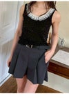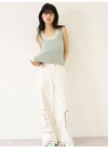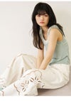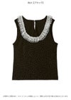 【煌めくホットフィットとレースが織りなす、ヴィンテージライクなタンクトップ】 キラキラとしたホットフィットを贅沢に施した、 華やかなタンクトップ。首元にあしらった繊細なレースが、 どこか懐かしいヴィンテージのような表情を演出します。 バックスタイルには存在感のある大きなビジューボタンを配し、 後ろ姿まで抜かりなくレディなアクセントをプラスしました。 【Fabric】 美しい落ち感のあるカットソー生地を使用。肌当たりが良く、 煌びやかなデザインながらリラクシーな着心地を叶えました。