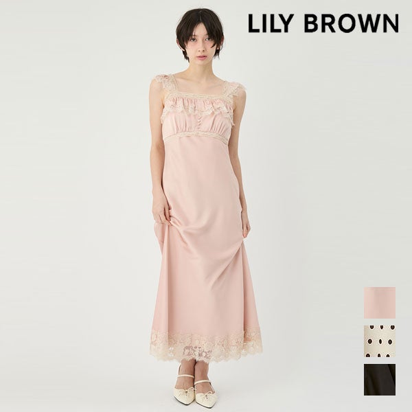 【新作10%OFF】 リリーブラウン LILY BROWN ワンピース 26春夏 レーストリムサテンワンピース 5月上旬~下旬予約 キャミソール ロング丈 サテン lwfo262149
