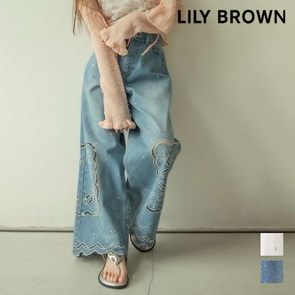 【新作10%OFF】リリー ブラウン LILY BROWN ボトムス 26春夏 [L.B CANDY STOCK]カットワークビジューデニムパンツ 5月中旬~6月上旬予約 フルレングス 刺繍 lwfp262843