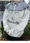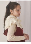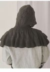 ケープとフードが合わさったような、付け襟感覚で取り入れられる寒い時期にぴったりのitemです。 柔らかなフリル裾やあご下のリボン、ぽんぽんとした透かし柄でかわいらしさをたっぷりとプラスしました。 アウターの上からでも着脱しやすく、デコラティブに彩ってくれます。