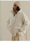 ヨーロッパ産のホワイトダックダウンを使用した、CREDONAの本格ダウンジャケット。 フィルパワー700以上の高品質ダウンにより、軽やかでありながら抜群の保温性とふっくらとしたボリューム感を実現しました。 (一般的な良質ダウンが500前後、上質とされる600に対し、CREDONAは700以上のクラスを採用。) 高級羽毛布団にも使用される原料を用い、寝具と同等の洗浄基準・洗浄方法で丁寧に処理することで、清潔かつ長く快適に着用いただけます。 ブラックスポット(羽毛の黒点)が少なく、見た目にも上品で美しい仕上がりです。 表地はメイドインジャパンでヴィンテージ風の加工と撥水加工を施したハイクオリティな素材を使用しており、機能性や防汚性にも富んでおります。 上質な軽さと暖かさ、そしてクリーンな美しさを両立した、冬のワードローブを格上げする一着です。