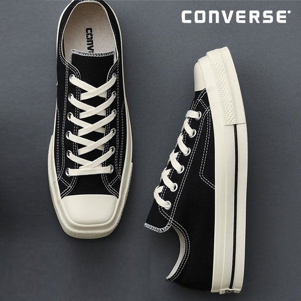 スクエアトウのレザーシューズをモチーフにした新モデル、オールスター スクエアトウのカラーアレンジモデル。 ラインを一本にしたテープ等のディテールを採用することで、ミニマルにまとめたデザイン。 レザーシューズのような佇まいを意識しながらもスニーカーらしい履き心地のよさにもこだわった一足。 コットンのスペアシューレースが付属。 ALL STAR SQUARETOE SPEC ・スクエアトウのレザーシューズをイメージしたつま先の形状にこだわった新たなラスト ・つま先の印象に合わせた角ばった形状にアレンジした飾りのサイドステッチ ・レザーシューズのような外観をイメージしたトウキャップ、テープの艶出し加工 ・アッパーを成形する際の底面にクッション性に優れるPUシートを採用し、その上にクッション性、通気性に優れるオープンセルのウレタンフォームと反発性に優れへたりにくいスポンジラバーを組み合わせたインソールを搭載