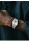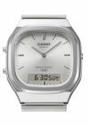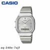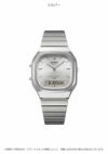 レトロモダンな装いのアナログ・デジタルコンビネーションモデル、AQ-240です。 角型フェイスにアナログ時計とデジタル表示を組み合わせ、丸みのあるケース形状を採用しています。 曲線を基調としたデザインが洗練された印象に。 ダイアルには旭光仕上げを施し、上品な光沢感を演出。 メタリックインデックスのアクセントで、クラシックとモダンを融合させています。 6時位置のデジタル表示も視認性とデザイン性を両立したバランスのよいレイアウトです。 レトロな趣に現代的な美しさをプラスしました。