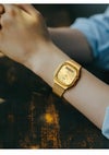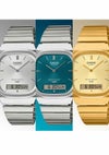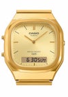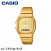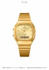 レトロモダンな装いのアナログ・デジタルコンビネーションモデル、AQ-240です。 角型フェイスにアナログ時計とデジタル表示を組み合わせ、丸みのあるケース形状を採用しています。 曲線を基調としたデザインが洗練された印象に。 ダイアルには旭光仕上げを施し、上品な光沢感を演出。 メタリックインデックスのアクセントで、クラシックとモダンを融合させています。 6時位置のデジタル表示も視認性とデザイン性を両立したバランスのよいレイアウトです。 レトロな趣に現代的な美しさをプラスしました。