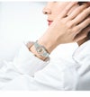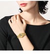 ミニマルなデザインが洗練された印象のモデルです。 26.3mm径の小型ラウンドケースなので、アクセサリー感覚で着用が楽しめます。 メタリック感のある文字板を採用することで煌めきが追加され、高級感のある仕上がりに。 ストップウオッチやアラーム等、日常に便利な機能も備えています。