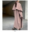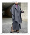 <<顔周り華やぐショール付きロングアウター>> チェスターコートにショールをレイヤードしたロングコートです。 首元のほどよいボリューム感が女性らしく、エレガントな雰囲気に仕上げます。 ショール部分はあえてアシンメトリーにすることで自然なドレープが生まれ、大人のこなれ感を演出。 ロング丈ながらサイドスリットで足捌きが良いのもうれしいポイント。 高級感ある毛混の微起毛生地を使用し、ショールにはフェイクレザーパイピングを施し アンジェムらしさをプラスしました。 ショールを取り外すとシンプルなチェスターコートとしても着用ができ、 気分に合わせて冬のおしゃれを楽しんでいただけるアイテムです。