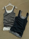 - 【即納】 アンヌーク anuke トップス Sheer Layered Tanktop シアーレイヤードタンクトップ ミドル丈 ノースリーブ 2way set 62510637