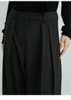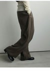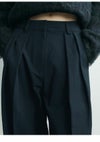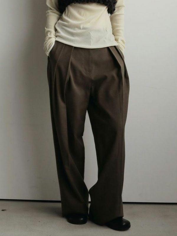 脚を綺麗に見せてくれる深めのタックを入れたワイドパンツ。 ベーシックなブラックとネイビーに、少し杢調のブラウンは優しい色味で、 どの色も着回しやすいカラーリングに。 シンプルでどんなトップスにも合わせやすくデイリーに使えるのが魅力。 コーディネートに迷ったらまず手に取りたい一本です。