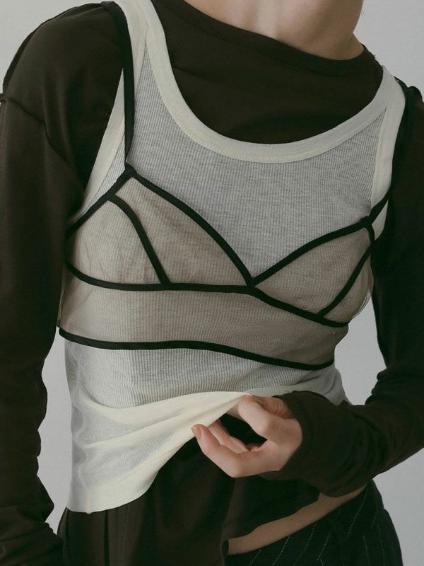 - アンヌーク anuke 2026springsummer トップス Bicolor Tulle Bratop 3月下旬~4月中旬予約 バイカラーチュールブラトップ インナー 透け感 26春夏 62610406