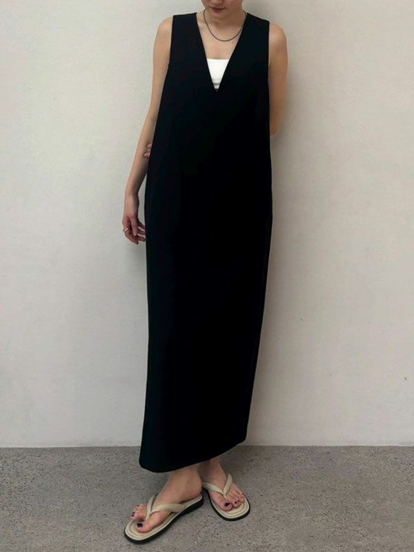 【SALE50%OFF】【即納】アンヌーク anuke セール ワンピース Cutoff Vneck Onepiece カットオフVネックワンピース ノースリーブ ロング丈 62510324