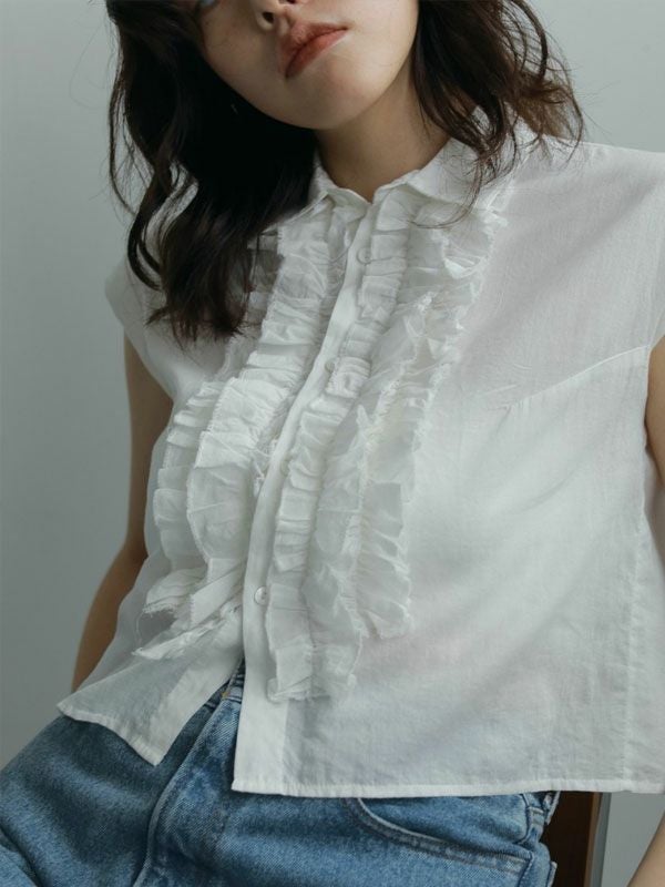 【FINAL SALE60%OFF】【即納】アンヌーク anuke トップス Sleeveless Frill Blouse ノースリーブフリルブラウス ノースリーブ ショート丈 62510418