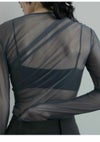 【FINAL SALE60%OFF】【即納】アンヌーク anuke 2025FallWinter トップス Tulle Gather Bodysuit チュールギャザーボディースーツ ミドル丈 長袖 シアー 透け感 レイヤード 25秋冬 62520608
