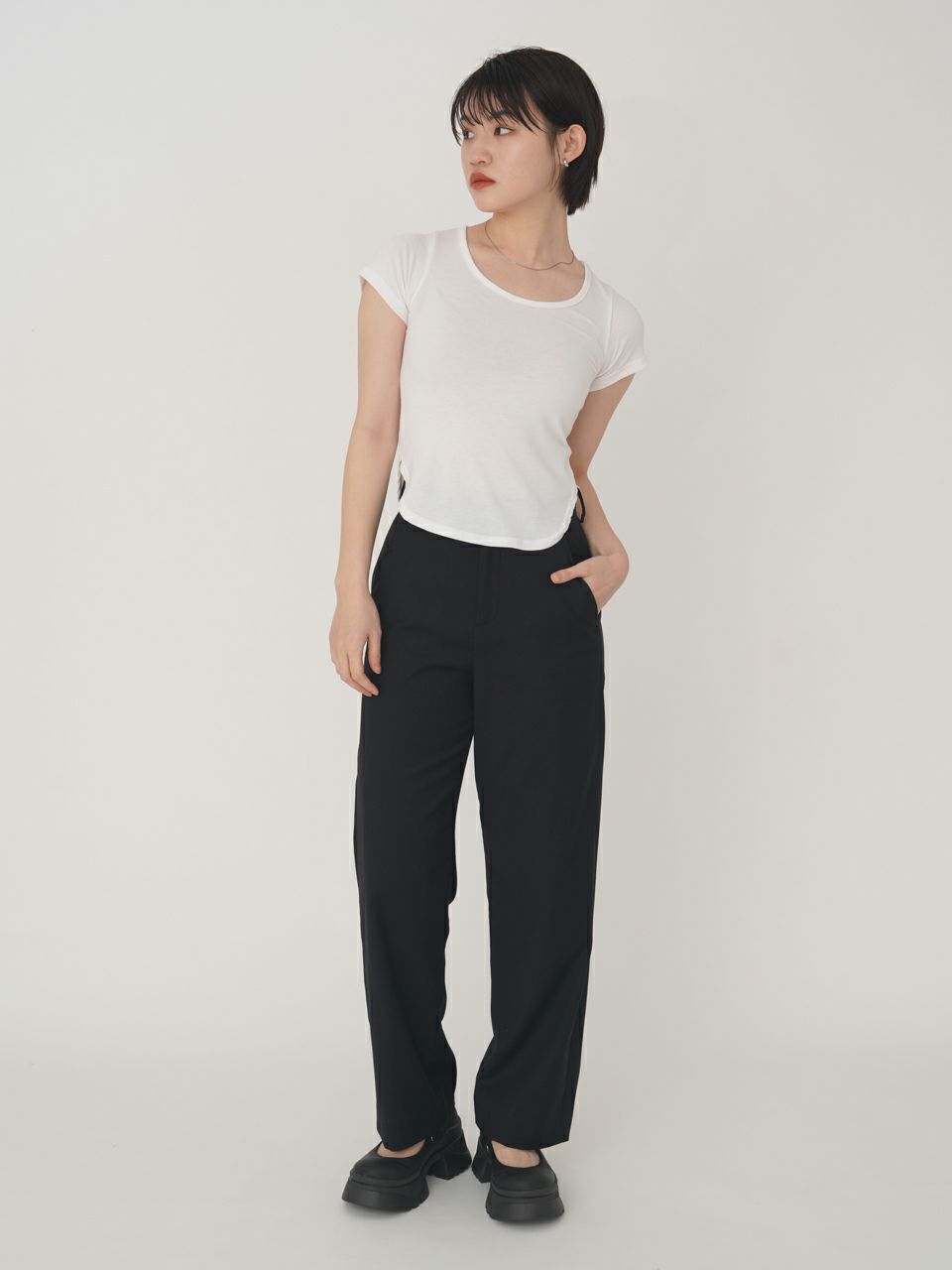 3. 【SALE60%OFF】 【即納】 エギュゼ iGUISER トップス cropped U-neck T-shirt (white) クロップドUネックTシャツ 半袖 ミドル丈 ミニ丈 ig-007