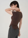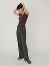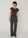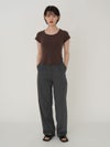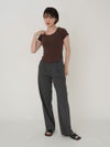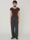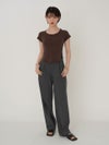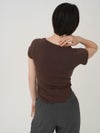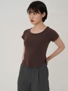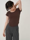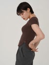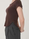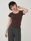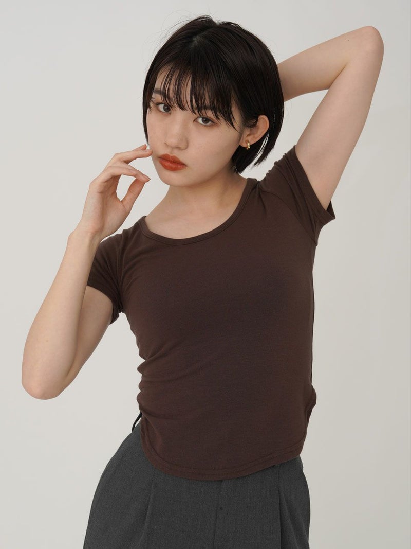 - 【SALE60%OFF】 【即納】 エギュゼ iGUISER トップス cropped U-neck T-shirt (brown) クロップドUネックTシャツ 半袖 ミドル丈 ミニ丈 ig-009