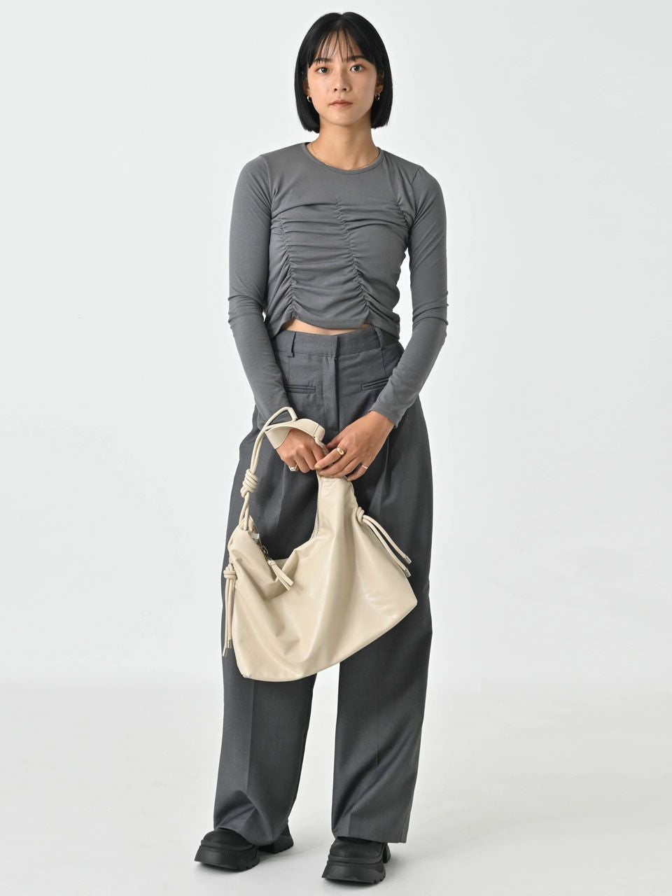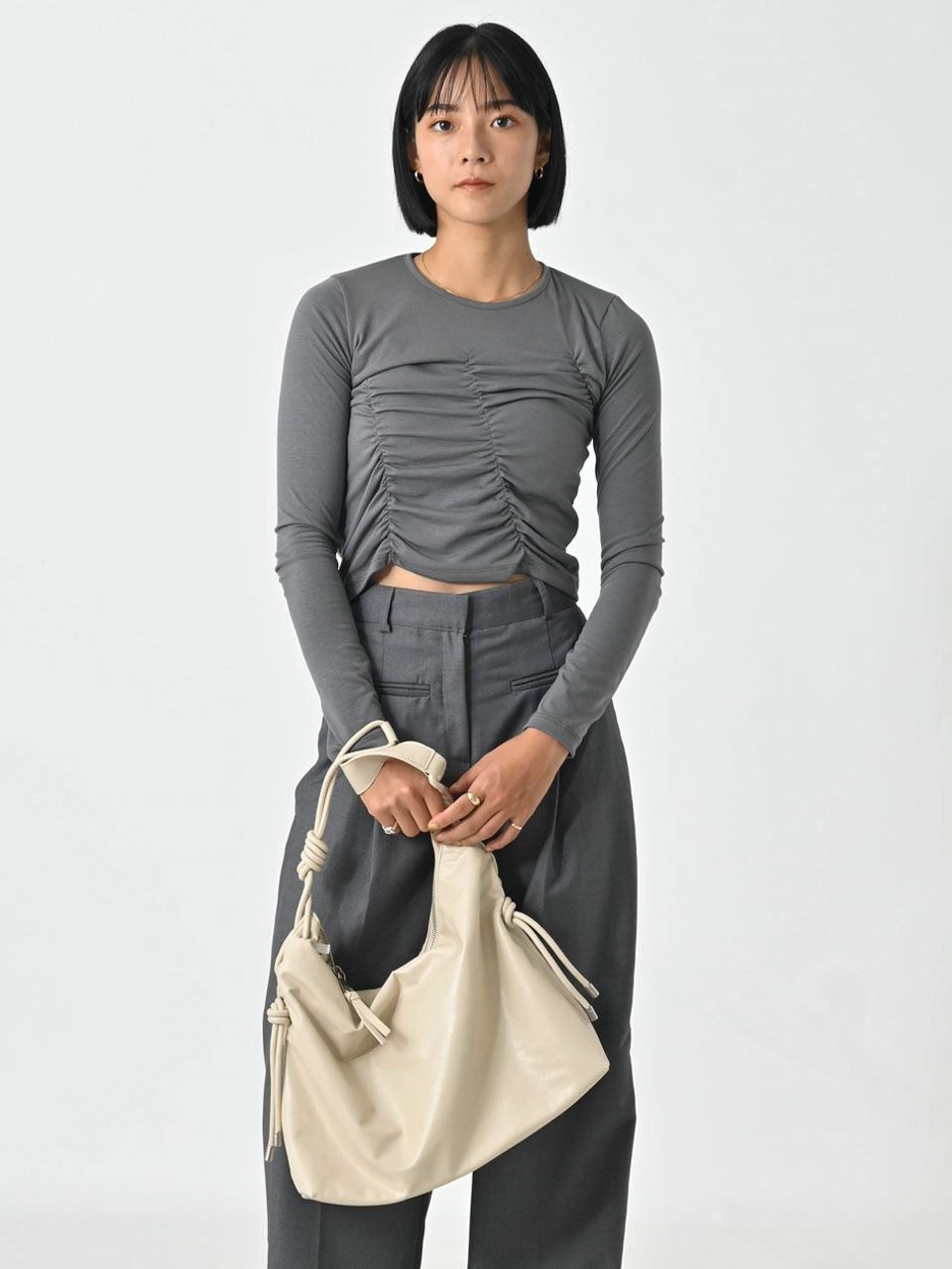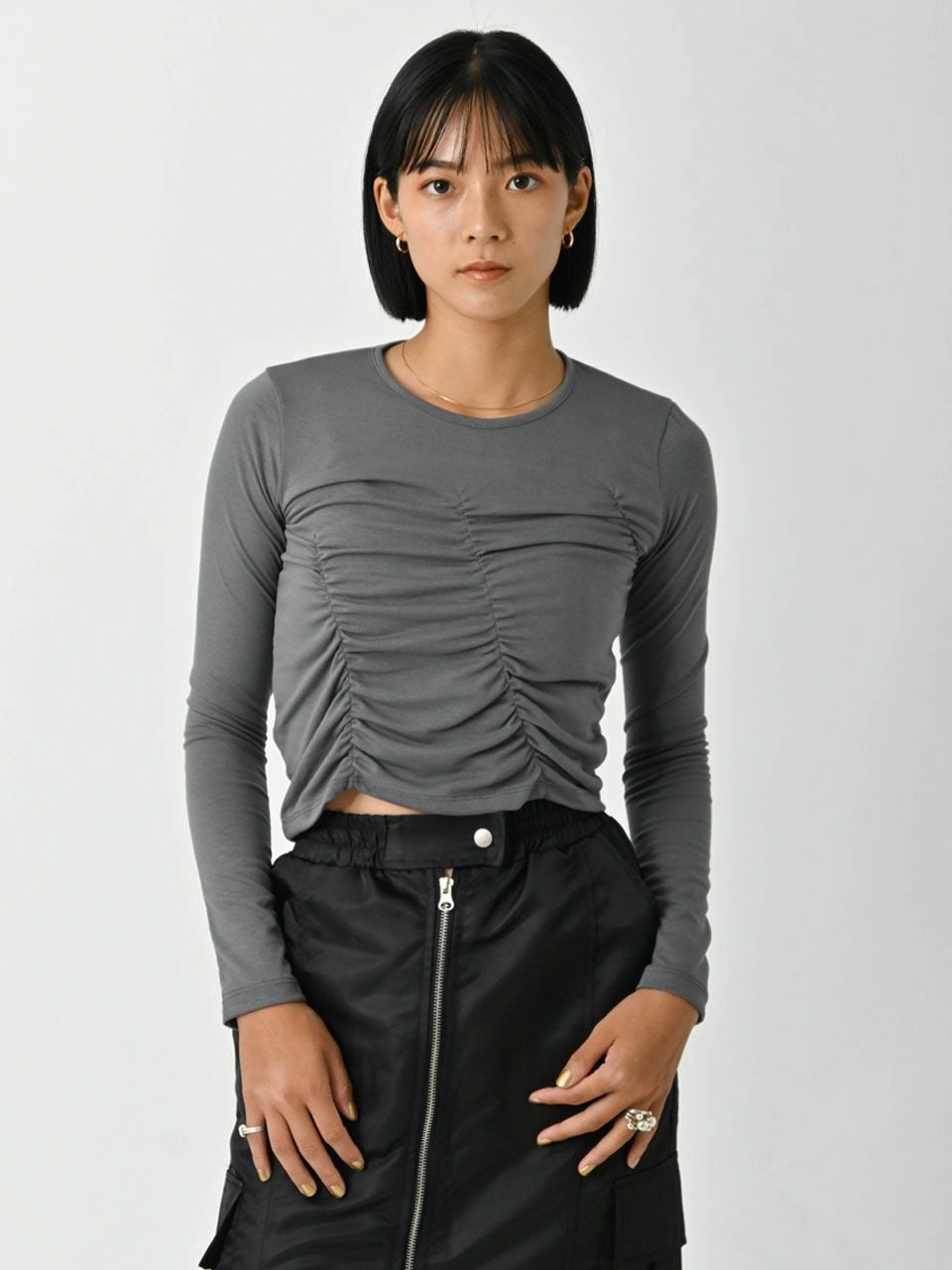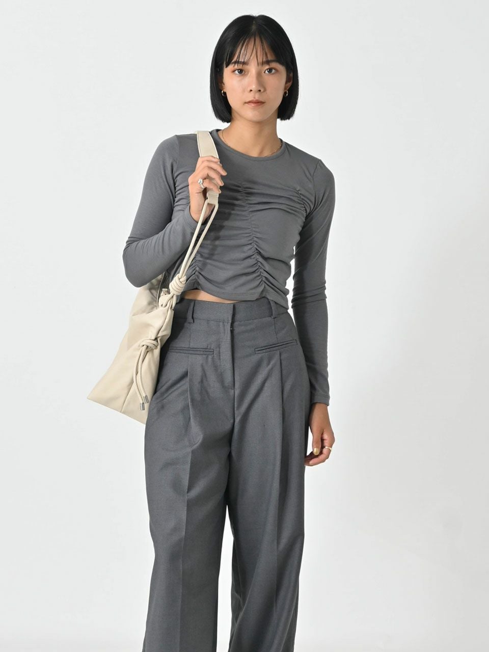 他の画像を見る SALE!在庫限りの早い者勝ち 【SALE60%OFF】【即納】 エギュゼ iGUISER トップス 24秋冬 asymmetric gathered tops アシンメトリーギャザートップス ミドル丈 長袖 ig-ig027 60%OFF 即納 ポイント5倍 ¥ 6,400 ¥ 2,560 税込 カートに入れる お気に入りに登録する