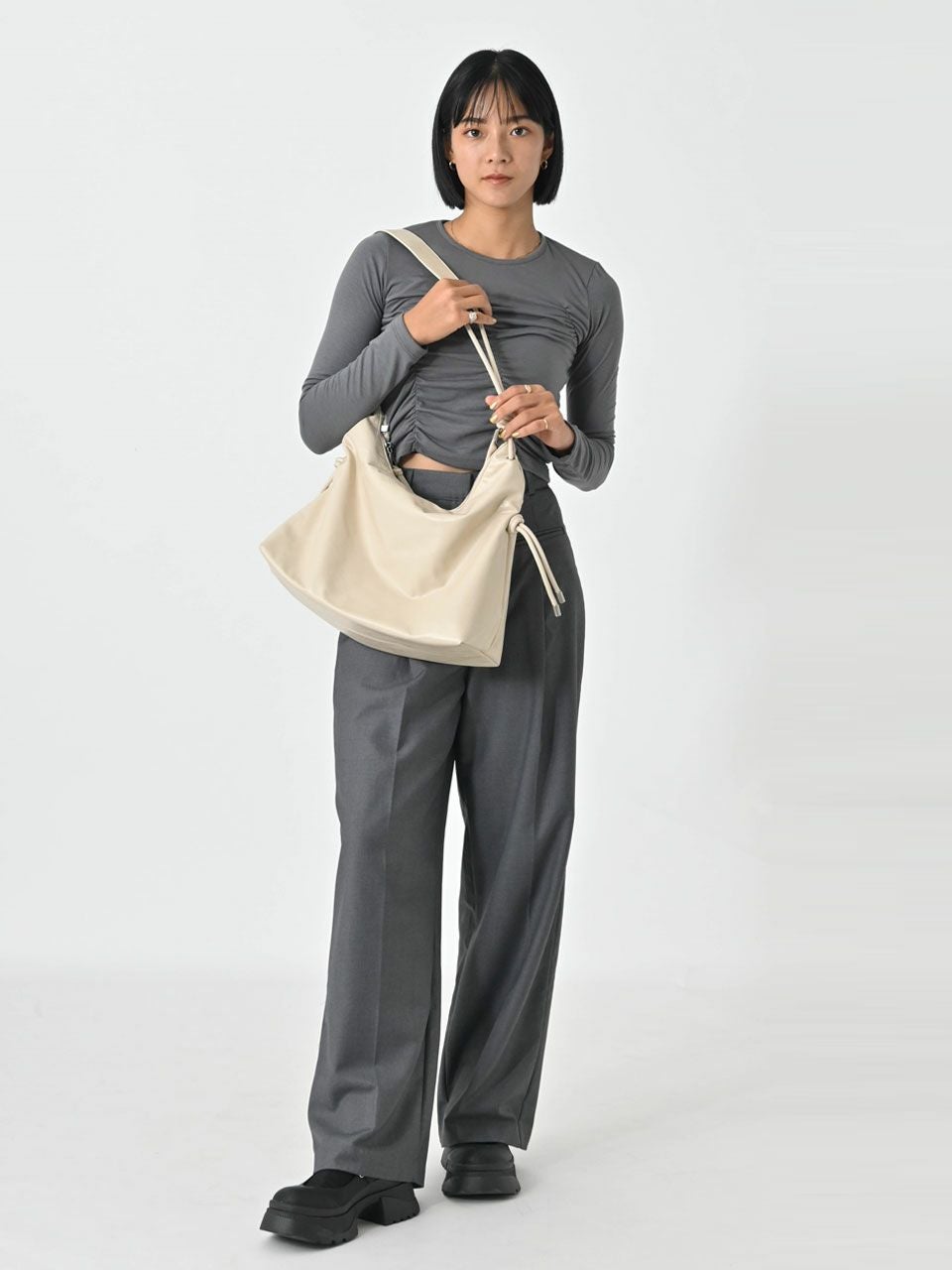 他の画像を見る SALE!在庫限りの早い者勝ち 【SALE60%OFF】【即納】 エギュゼ iGUISER ボトムス 24秋冬 leather rope strap bag(IVORY) レザーロープストラップバッグ ショルダーバッグ 大容量 内ポケット ig-ig032 60%OFF 即納 ポイント5倍 ¥ 6,380 ¥ 2,552 税込 カートに入れる お気に入りに登録する
