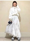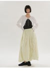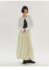 エアリーなタフタをふんだんに使用したバルーンスカート。 身頃のドローコードを絞ることによってお好みのボリューム感で着用いただけます。