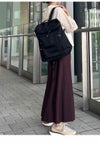 【emmi 撥水バックパックシリーズ】 大好評のemmiのバックパックシリーズよりギャザーデザインが登場。 ポケット豊富・収納力抜群でPCも入るので、通勤・通学やデイリー使いはもちろん、マザーズバッグとしても大活躍。 コンパクトでシンプルなデザインなので、ユニセックスで使用いただけます。 雨の日にも嬉しい撥水加工付き。 カジュアルなアイテムながらも、クエアフォルムが大人なデザイン。レザータッチ素材との組み合わせがシックな表情を見せてくれます。 カードケースが別途付いており、定期入れ等に使用できます。 背中側のファスナーは本体内部と繋がっており、背負いながら本体内部のものが取り出せるので、 ペットボトルや水筒・タンブラーの収納、出し入れも楽々。(別ポケットではございません。) ■撥水加工 ■リサイクルポリエステル使用 ・ポケット数:外2個(マグネットタイプ2個、背中側1個)、中2個 ・収納PCサイズ:13.3インチ ・A4収納:可能 ・容量:約17L ・本体重量:610g