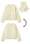【emmi × TAION】 価値のある価格の追求にフォーカスを当て、高機能・保温性・着心地に拘ったダウンウェアーを展開し、 高密度撥水加工を行った生地を中心に、機能性溢れるアイテムを取り扱っているブランド「TAION」。 ■Design コンパクトなサイズ感でダウンの下に仕込んだり、軽羽織としても長い季節で楽しんでいただけます。emmiらしくマフラーをセットにしました。