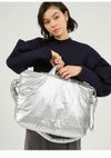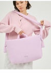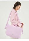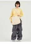 ふんわりシルエットのバックは大容量で、しっかり内側にもポケットを付けました。 長さ調節は紐の結び目で調整可能で、入口はジップ仕様にしたので、中身が見えないところが嬉しいポイント。 A4サイズ収納可能でPCやタブレットを持ち運ぶにもピッタリ!