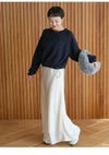 1週間毎日着られるくらい着心地の良いニットを目指したニットプルオーバー。 シンプルなデザインながらも、裾にはドローコードディテール、左胸にワンポイント刺繍、 着るだけでボリューム感が出るように袖をカーブにする等、細かいディテールにこだわった1着。