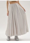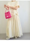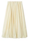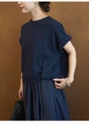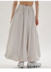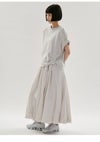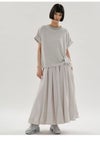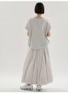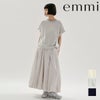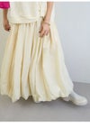 薄手のラメ裏毛トップスと、リサイクルナイロンを使用した撥水バルーンスカートのセットアイテム。 トップスは裾にデザインを施し、シンプルながらも視線を集める一枚。 スカートは軽やかな素材感とふんわりとしたフォルムで、動きにニュアンスを添えます。