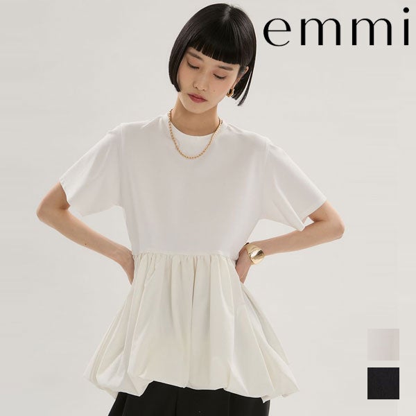 【新作10%OFF】エミ emmi トップス ドッキングバルーンカットソー/UVカット/接触冷感 5月下旬~6月中旬予約 半袖 ミドル丈 フレア 13wct262065