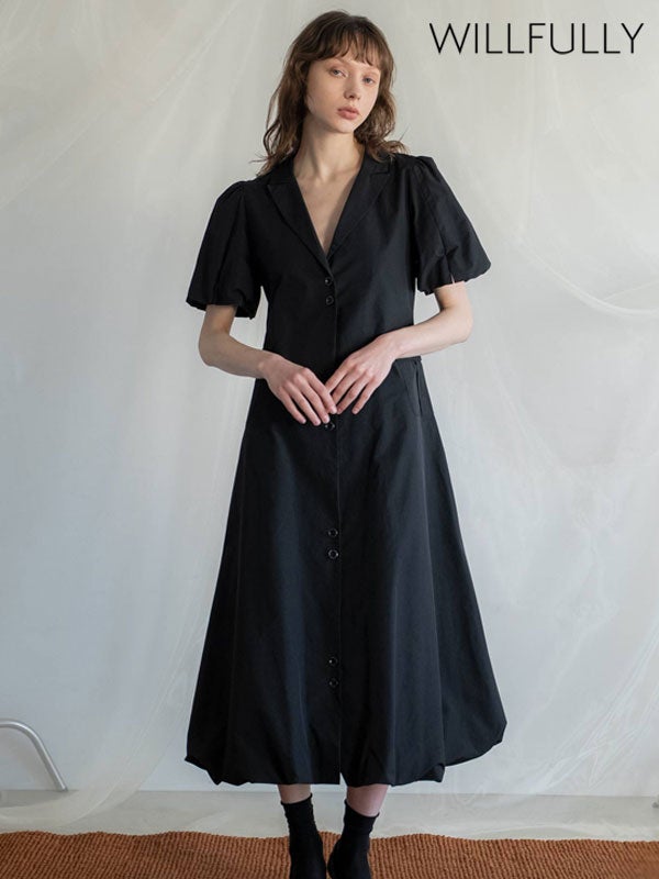 - 【即納】 ウィルフリー WILLFULLY ワンピース hem balloon tailored jacket like OP ヘムバルーンテーラードジャケットライクワンピース 半袖 マキシ丈 2611-op-14