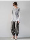 F【フリー】ウエスト64~114cm ヒップ120cm 股上36cm 股下69cm わたり周り75cm 裾幅15~22cm