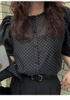 - 【即納】 ウィルフリー WILLFULLY トップス volume sleeve dot scrunchie BL ボリュームスリーブドットシュシュブラウス 半袖 ミドル丈 2611-to-27