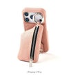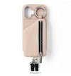 ajewのシルバーリングとファスナーポケットが象徴的な定番モデル。 日常に寄り添う携帯ケースをシンプルでスタイリッシュなデザインで表現。 ポケットにはカードやキャッシュ・鍵などの小物を収納でき、ポケットのスナップを外すと自立する機能が備わったデザインです。 取外し可能なショルダー紐付きなので、荷物が多い時やママにも便利な仕様に。 付属紐は長さ調整可能。 ケース下部(ポケット下)の小さい丸型金具にお取り付けください。