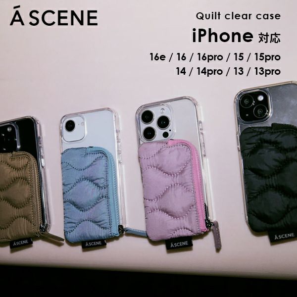 - 【即納】【iPhone対応】 エーシーン A SCENE Quilt clear case キルトクリアケース iPhone16 iPhone15 14 pro 小銭入れ 自立 ギフト ajew エジュー as02-041