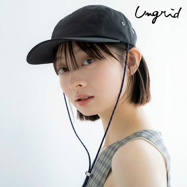 ジェットキャップ型でスポーティーなデザイン。 カジュアルなゴム紐がポイントで、さりげない配色も他にはないポイント。 しゃかっとしたナイロン混の素材をしようしています。 シンプルなワンピーススタイリングから、カジュアルなデニムスタイリングにも幅広く相性が良いです。