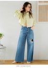 カフスは伸ばして着ても、折って着ても可愛いデザインに。