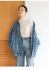 ハイネックがすっきりと見え、お洒落見えするデザイン。
