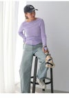繊細なシアー素材が抜け感出る1枚。 袖口にはフィンガーホールをあけている所もさりげないポイント。 程よくフィットするコンパクトなサイズ感です。