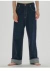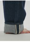 ストレートラインで全体的にゆるっとしたルーズ感のあるシルエットが魅力のデニム。 腰履きでマニッシュな雰囲気で履いていただくのがおすすめな一枚。 生地端を贅沢に使用しているのため、裾を折り返しても履いていただけるように少し長めの着丈にしています。