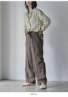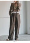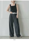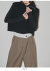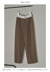 コントラストのあるウエストバンドと斜めのフロントデザインがポイントのトラウザーズ。 ウエストのデザインと深めのタックがスタイルアップを実現し、シンプルなトップスと合わせてもマニッシュな雰囲気に仕上がる一枚。