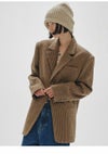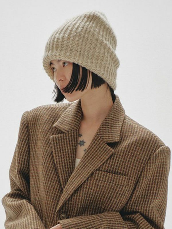 ざっくりとした編み地で、ふんわりとした柔らかい質感が魅力のニットビーニー。 二重構造でボリュームのあるシルエットが存在感を放ち、冬のスタイリングのアクセントになります。 かっちりとしたジャケットスタイルの外しアイテムにもおすすめです。