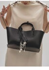 同じ素材で仕立てた鍵などを付けられるチャームやボックスシルエットのボディが目を惹くアイテム。